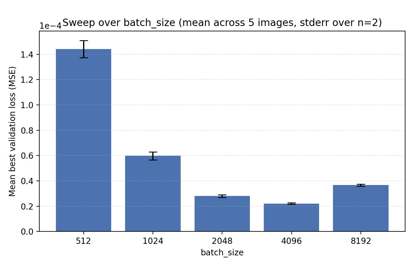 On the topic of batch_size, our choice of 4096 is indeed optimal among the canonical $2^n$ alternatives.