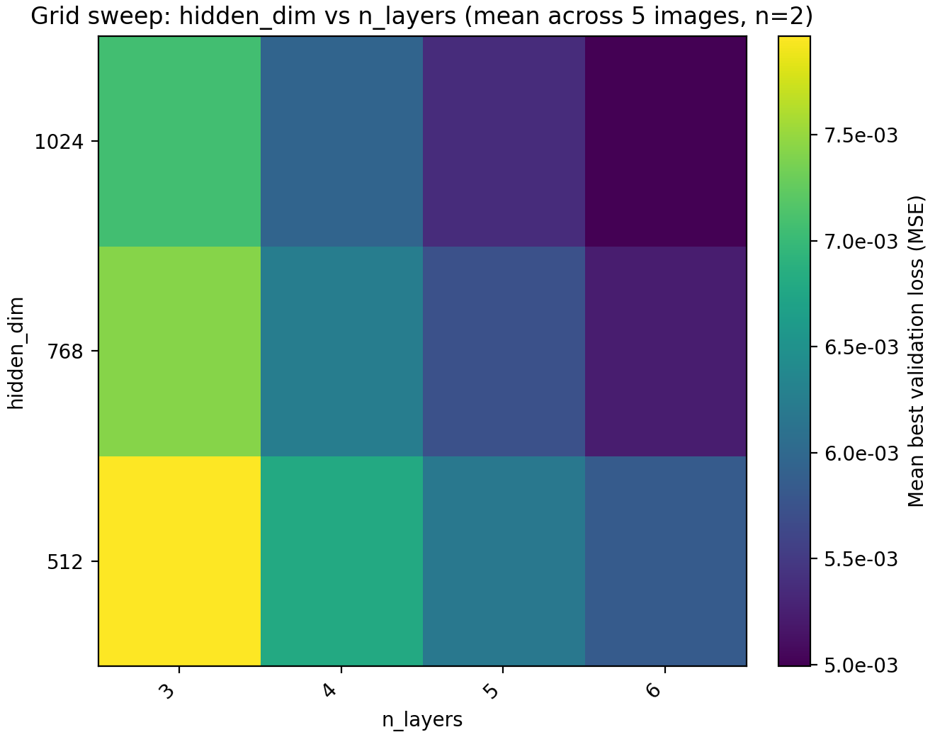 hidden_dim (x-axis) and n_layers (y-axis). The loss curves are with the optimal choice.